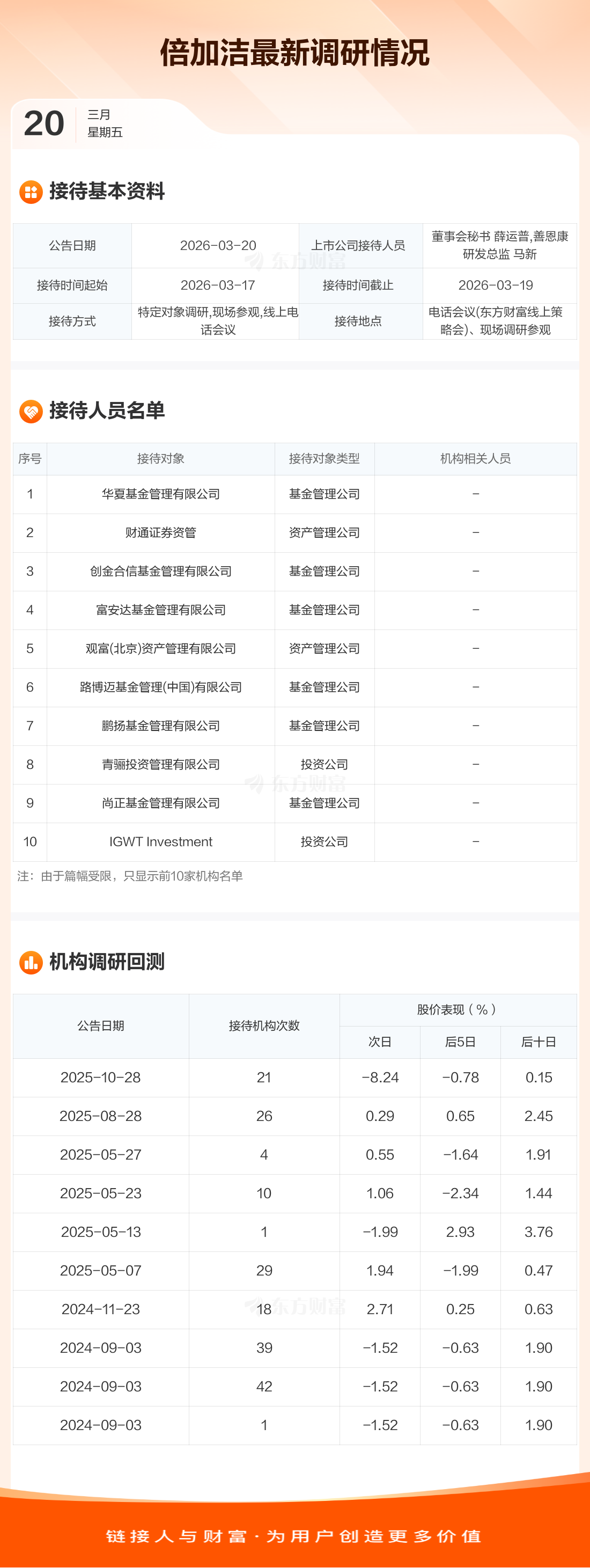 【调研快报】倍加洁接待华夏基金管理有限公司等63家机构调研
