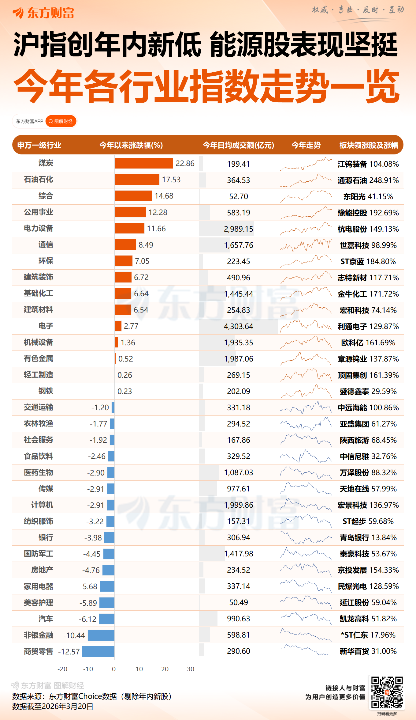 沪指失守4000点创年内新低 一图速览今年以来各行业板块行情