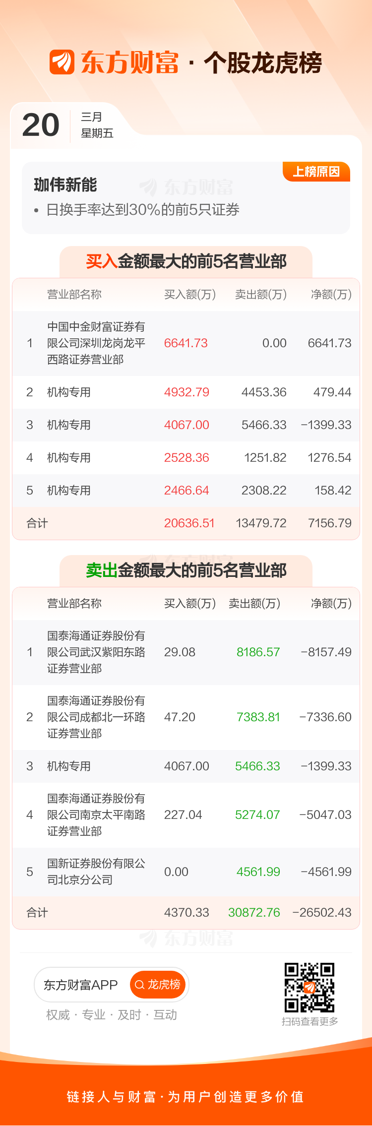 珈伟新能(300317)龙虎榜数据(03-20)