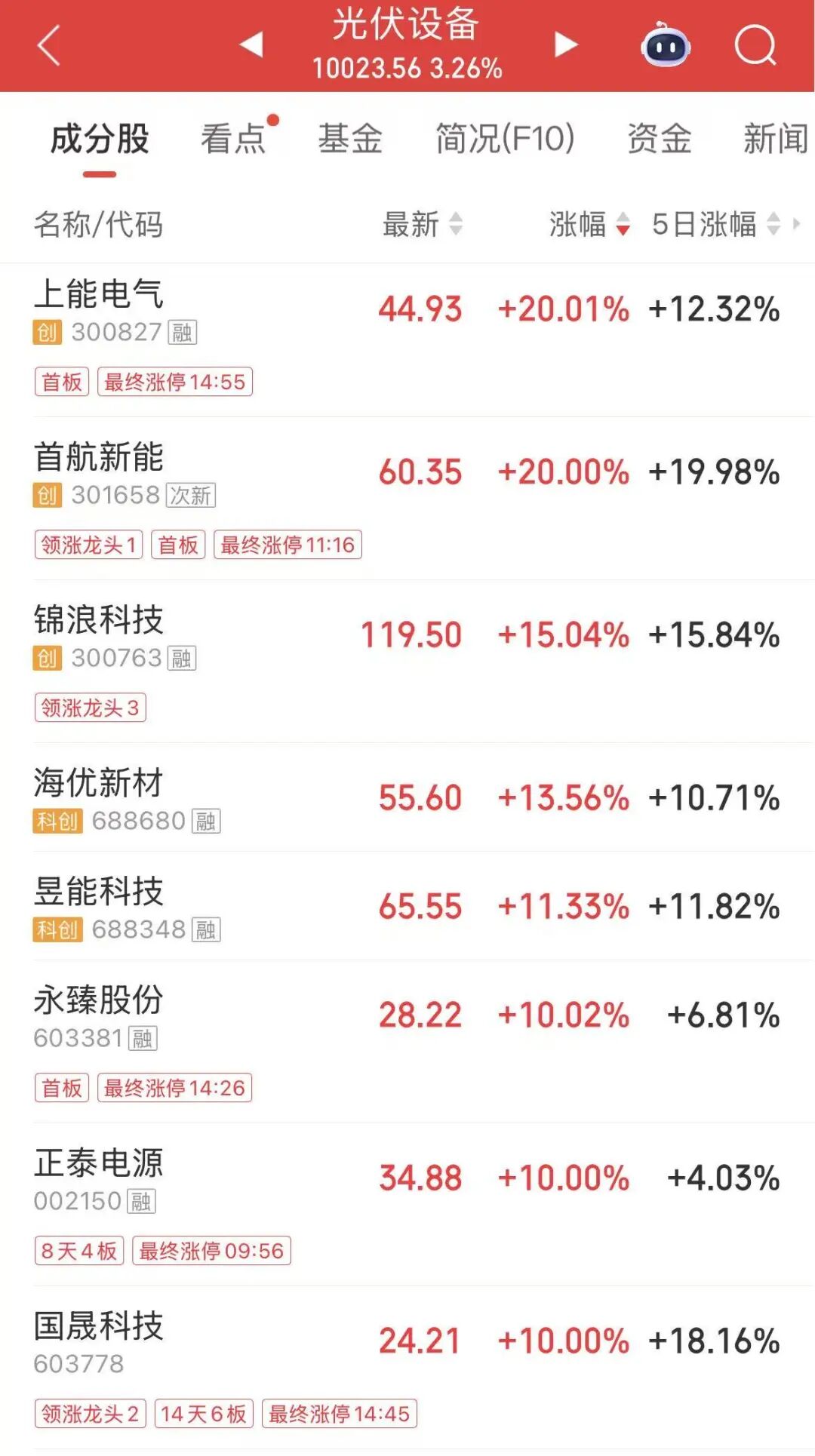 新能源板块午后继续拉升,光伏、逆变器板块爆发,上能电气、首航新能、国晟科技等多股涨停;锂电池板块走高,豪鹏科技涨停。