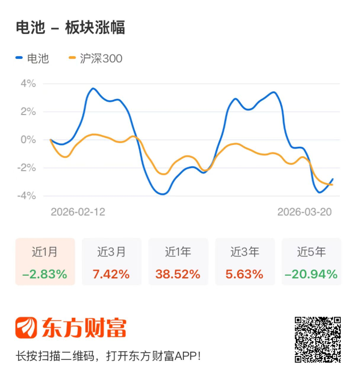 3月20日,A股三大指数今日涨跌不一,沪指失守4000点大关,创业板指盘中创2021年12月以来新高。截止收盘,沪指跌1.24%,收报3957.05点;深证成指跌0.25%,收报13866.20点;创业板指涨1.30%,收报3352.10点。盘面上,电池行业板块涨0.98%;个股方面,石大胜华、豪鹏科技涨停,鹏辉能源、华宝新能等均有不同程度上涨。