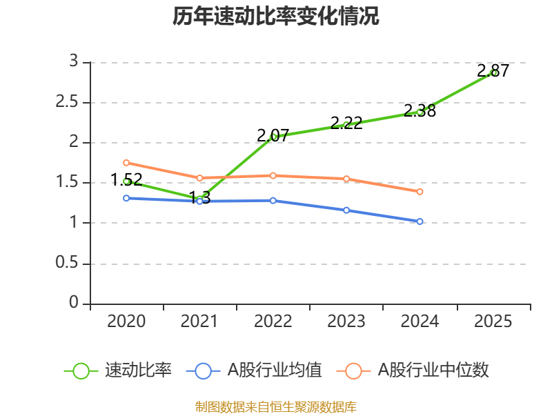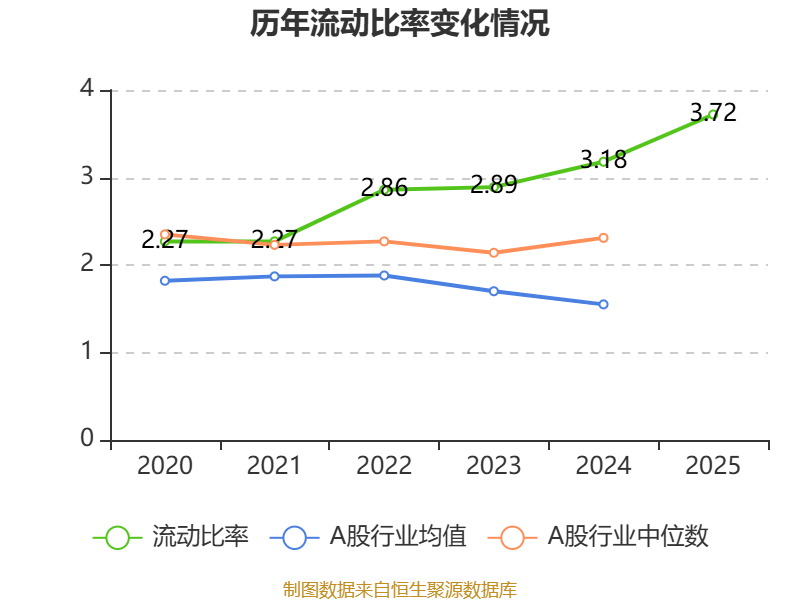 2025年,公司流动比率为3.72,速动比率为2.87。