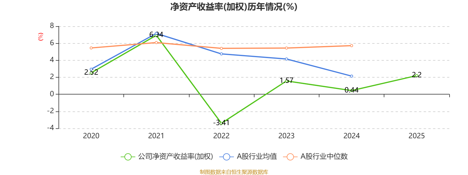 数据显示,2025年公司平均净资产收益率为2.2%,较上年同期上升1.76个百分点。