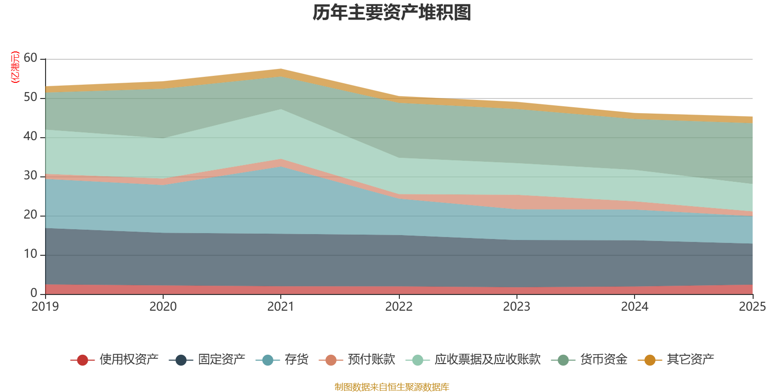 资产重大变化方面,截至2025年末,公司货币资金较上期末增加19.42%,占公司总资产比重上升6.12个百分点;固定资产较上期末减少11.01%,占公司总资产比重下降2.36个百分点;预付账款较上期末减少42.51%,占公司总资产比重下降1.89个百分点;应收票据及应收账款较上期末减少12.54%,占公司总资产比重下降1.88个百分点。