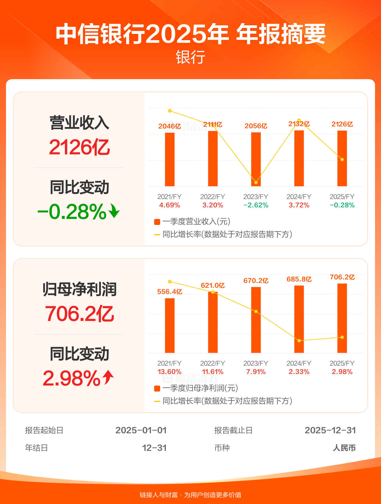 【图解财报】中信银行年报盈利706.18亿人民币,同比增加2.98%