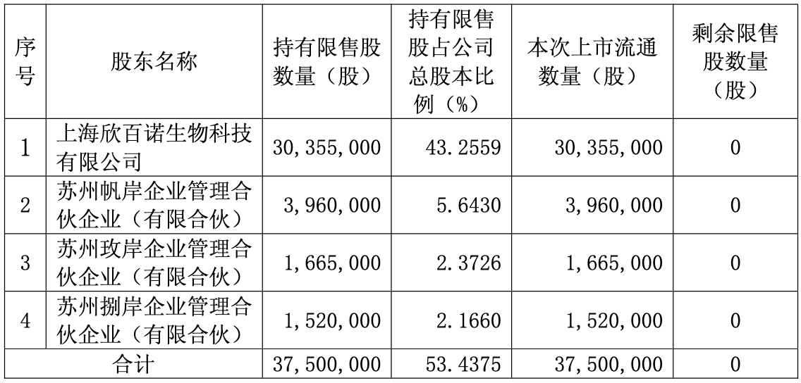 近岸蛋白:3750万股首发限售股3月30日上市流通