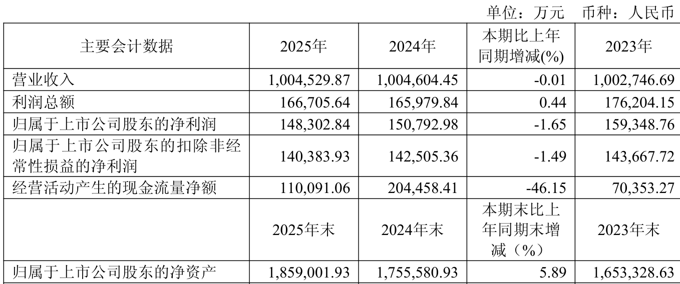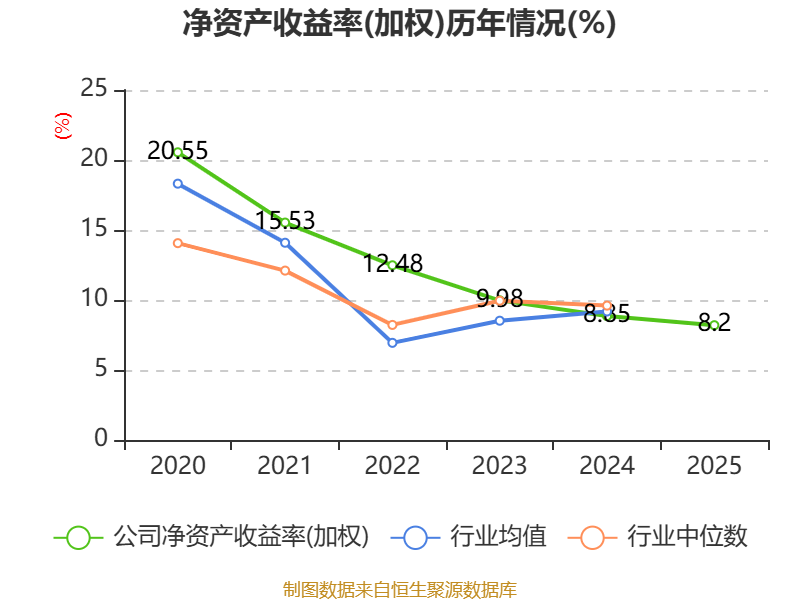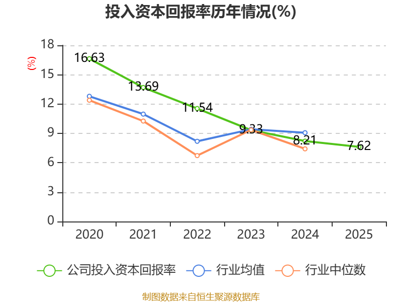 数据显示,2025年公司加权平均净资产收益率为8.2%,较上年同期下降0.65个百分点。公司2025年投入资本回报率为7.62%,较上年同期下降0.59个百分点。