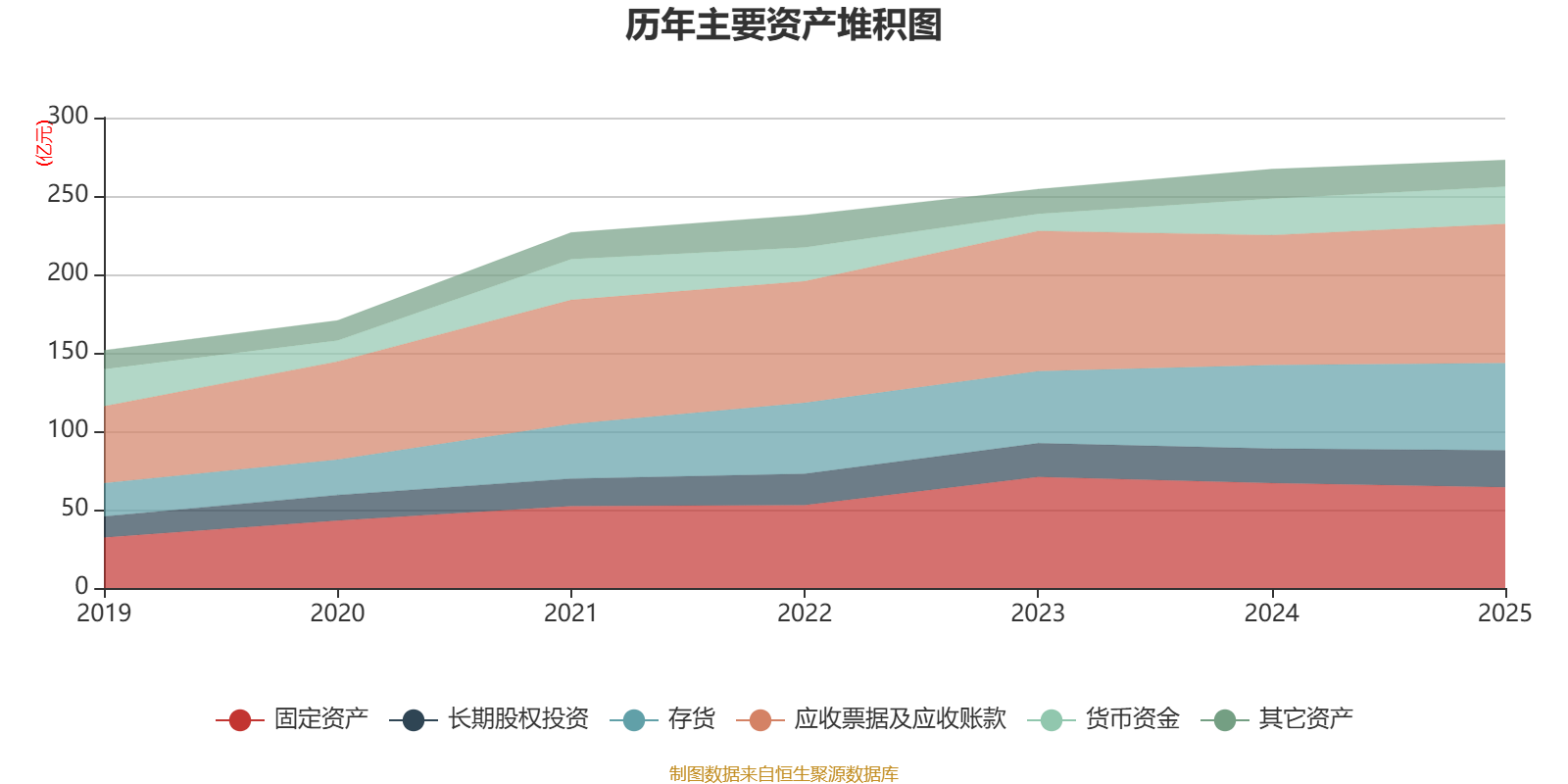 资产重大变化方面,截至2025年末,公司固定资产较上年末减少3.86%,占公司总资产比重下降1.48个百分点;应收票据及应收账款较上年末增加6.91%,占公司总资产比重上升1.43个百分点;其他流动资产较上年末增加1097.98%,占公司总资产比重上升0.77个百分点;应收款项融资较上年末减少56.11%,占公司总资产比重下降0.7个百分点。