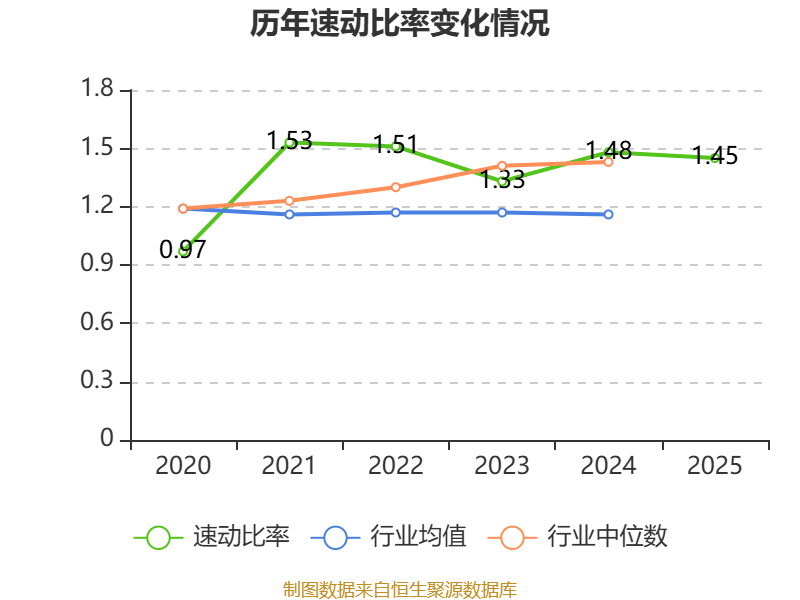 2025年,公司流动比率为2.13,速动比率为1.45。