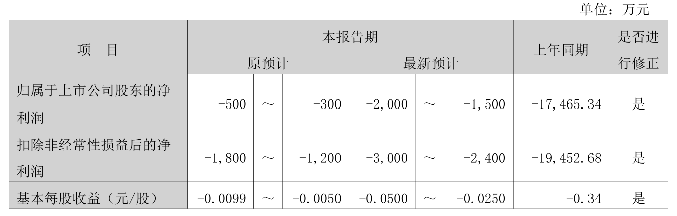 此外,修正前,公司预计扣非净亏损为1200万元至1800万元;修正后,公司预计扣非净亏损扩大至2400万元至3000万元。