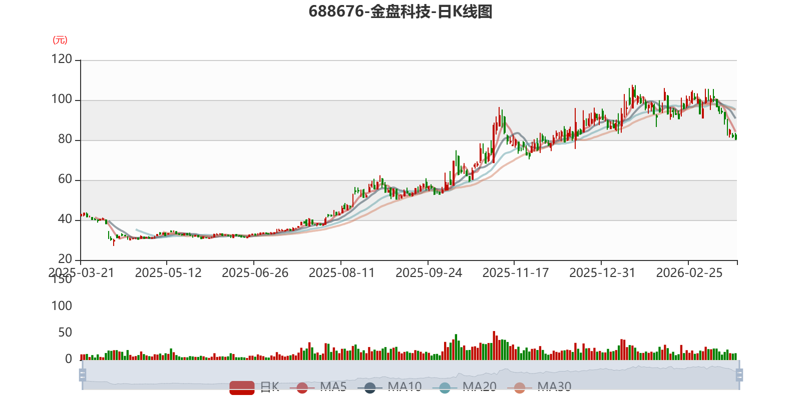 以3月20日收盘价计算,金盘科技目前市盈率(TTM)约为56.05倍,市净率(LF)约7.07倍,市销率(TTM)约5.07倍。