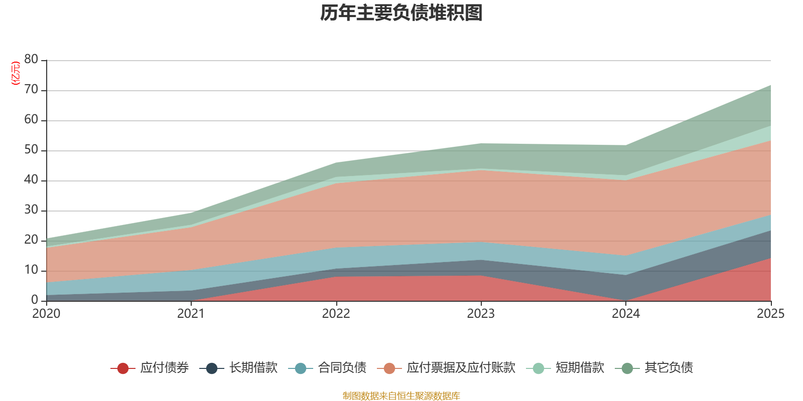 负债重大变化方面,截至2025年末,公司应付债券占公司总资产的11.43%,上年末为0;应付票据及应付账款较上年末减少1.34%,占公司总资产比重下降6.1个百分点;合同负债较上年末减少18.94%,占公司总资产比重下降2.49个百分点;短期借款较上年末增加192%,占公司总资产比重上升2.22个百分点。