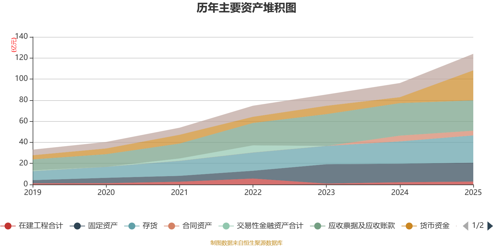 资产重大变化方面,截至2025年末,公司货币资金较上年末增加406.88%,占公司总资产比重上升17.08个百分点;应收票据及应收账款较上年末减少6.56%,占公司总资产比重下降8.8个百分点;固定资产较上年末增加1.64%,占公司总资产比重下降3.85个百分点;合同资产较上年末减少17.83%,占公司总资产比重下降2.07个百分点。