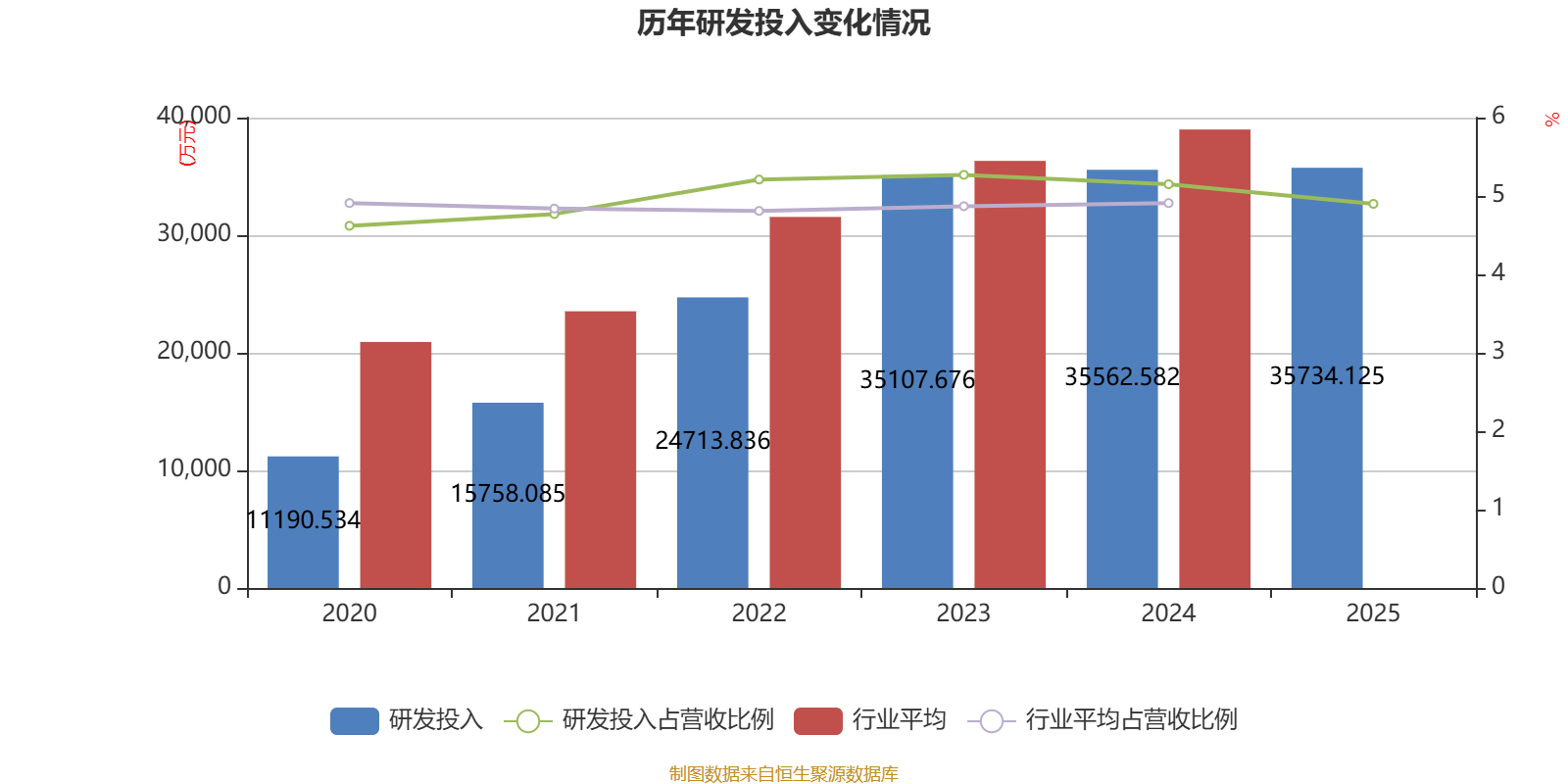 2025年全年,公司研发投入金额为3.57亿元,同比增长0.48%;研发投入占营业收入比例为4.9%,相比上年同期下降0.25个百分点。此外,公司全年研发投入资本化率为0.46%。
