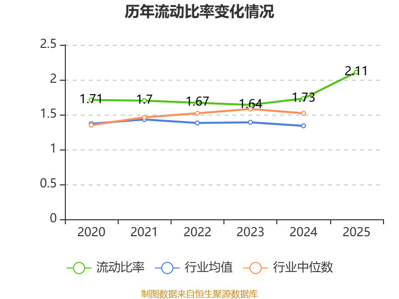 2025年,公司流动比率为2.11,速动比率为1.53。