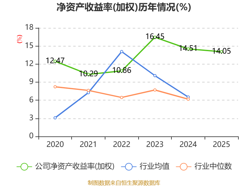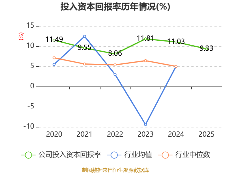 数据显示,2025年公司加权平均净资产收益率为14.05%,较上年同期下降0.46个百分点。公司2025年投入资本回报率为9.33%,较上年同期下降1.7个百分点。