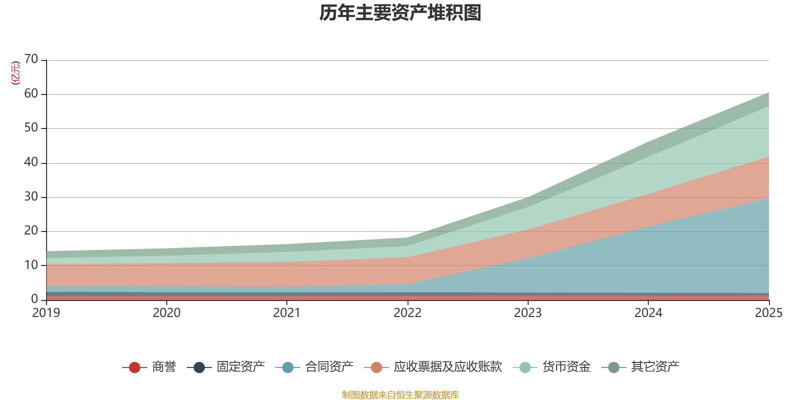 资产重大变化方面,截至2025年末,公司合同资产较上年末增加43.31%,占公司总资产比重上升3.86个百分点;存货较上年末减少20.07%,占公司总资产比重下降1.5个百分点;货币资金较上年末增加35.32%,占公司总资产比重上升0.74个百分点;固定资产较上年末减少12.42%,占公司总资产比重下降0.66个百分点。