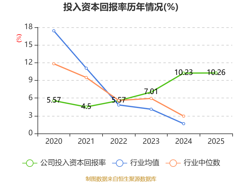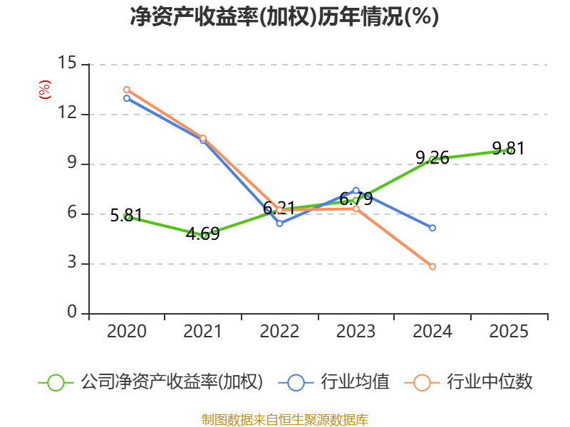 数据显示,2025年公司加权平均净资产收益率为9.81%,较上年同期上升0.55个百分点。公司2025年投入资本回报率为10.26%,较上年同期上升0.03个百分点。