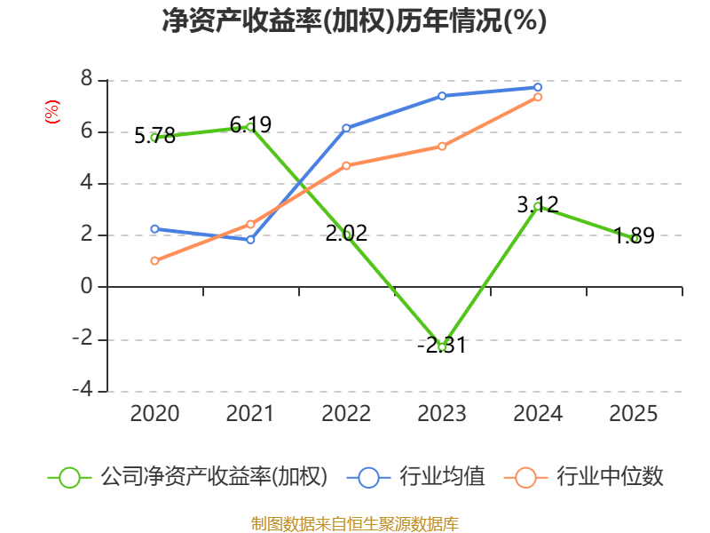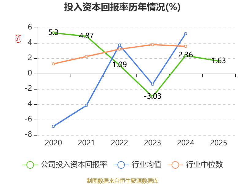 数据显示,2025年公司加权平均净资产收益率为1.89%,较上年同期下降1.23个百分点。公司2025年投入资本回报率为1.63%,较上年同期下降0.73个百分点。