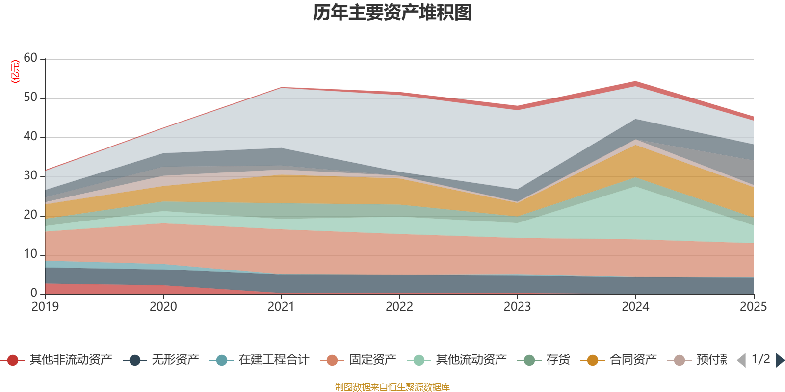 资产重大变化方面,截至2025年末,公司其他流动资产较上年末减少66.45%,占公司总资产比重下降14.8个百分点;交易性金融资产合计占公司总资产的13.85%,上年末为0;货币资金较上年末减少27.19%,占公司总资产比重下降1.95个百分点;合同资产较上年末减少6.2%,占公司总资产比重上升1.9个百分点。