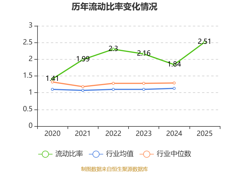 2025年,公司流动比率为2.51,速动比率为2.35。