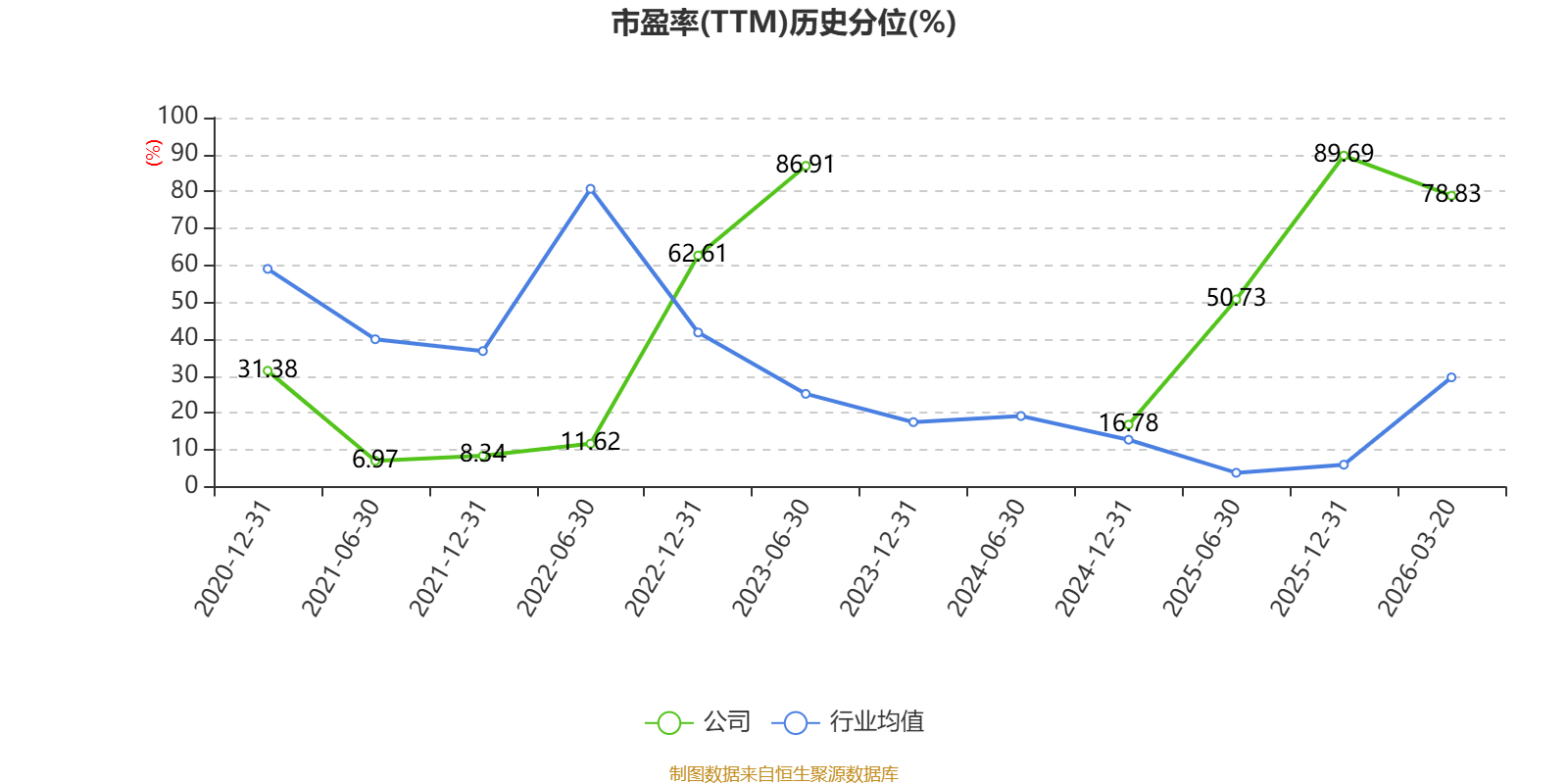 以3月20日收盘价计算,博迈科目前市盈率(TTM)约为82.3倍,市净率(LF)约1.57倍,市销率(TTM)约2.66倍。