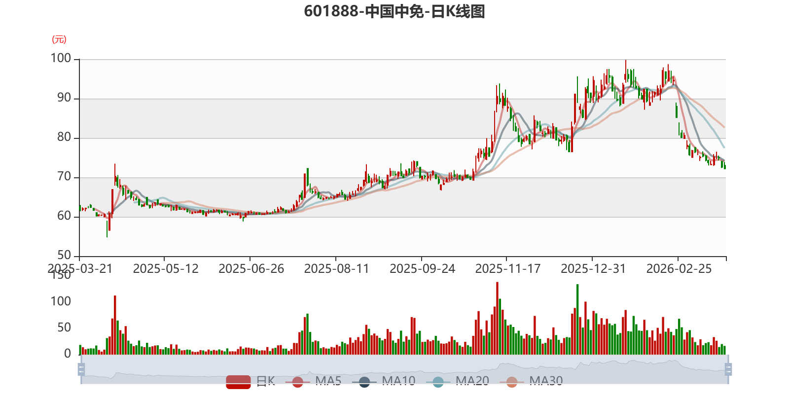 中证智能财讯中国中免(601888)3月20日晚间披露2025年业绩快报,公司实现营业收入536.94亿元,同比下降4.92%;归母净利润35.86亿元,同比下降15.97%;扣非净利润35.44亿元,同比下降14.48%;基本每股收益1.7332元,加权平均净资产收益率为6.48%。以3月20日收盘价计算,中国中免目前市盈率(TTM)约为41.66倍,市净率(LF)约2.71倍,市销率(TTM)约2.8倍。