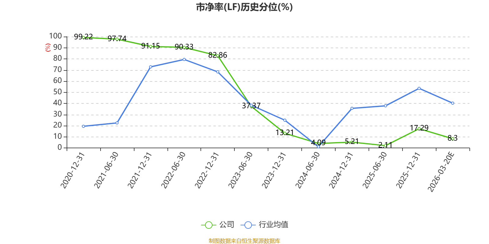 市盈率、市净率为负时,不显示当期分位数,会导致折线图中断。