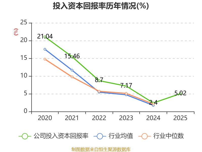 数据显示,2025年公司加权平均净资产收益率为5.11%,较上年同期上升2.27个百分点。公司2025年投入资本回报率为5.02%,较上年同期上升2.62个百分点。