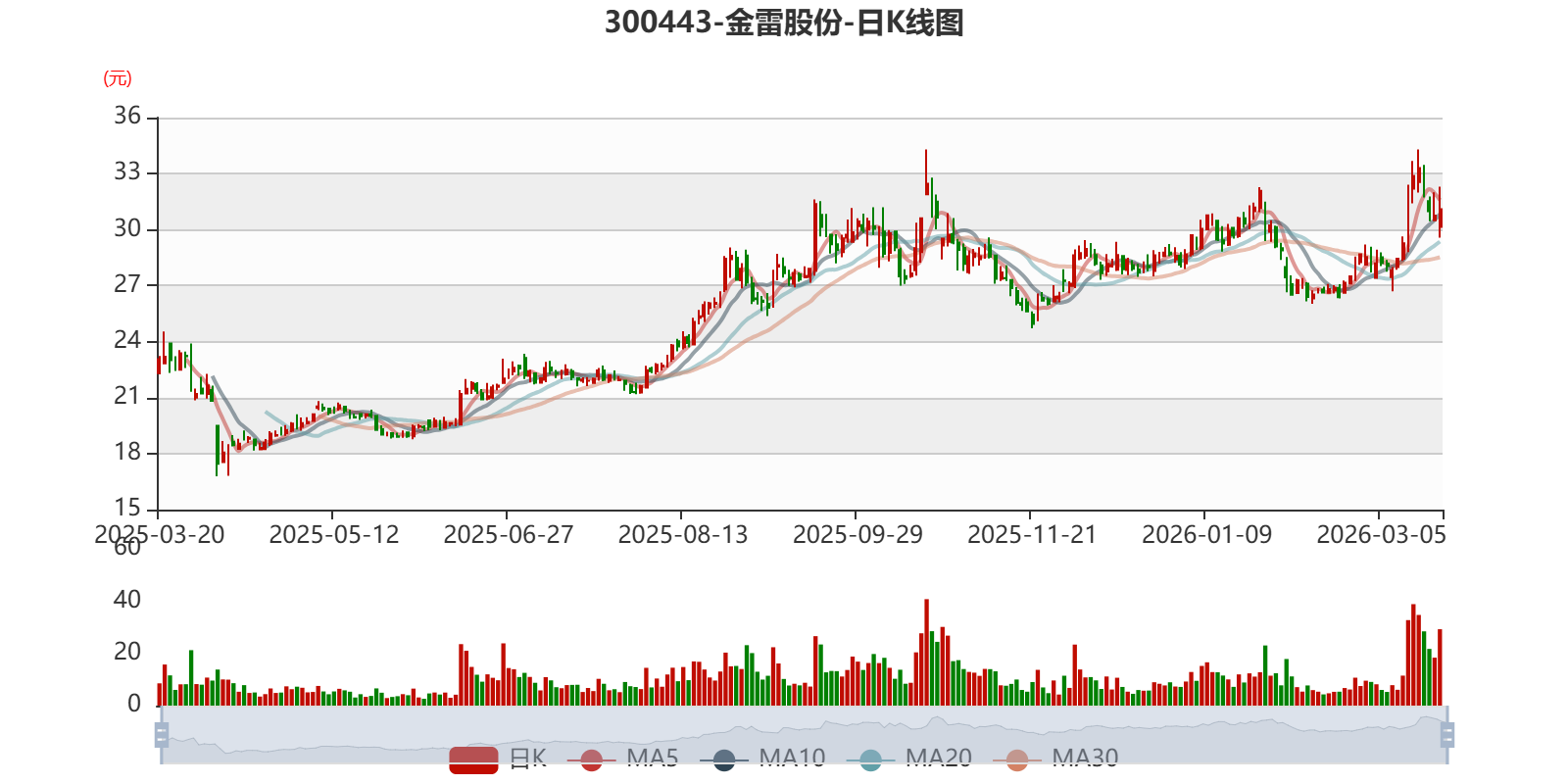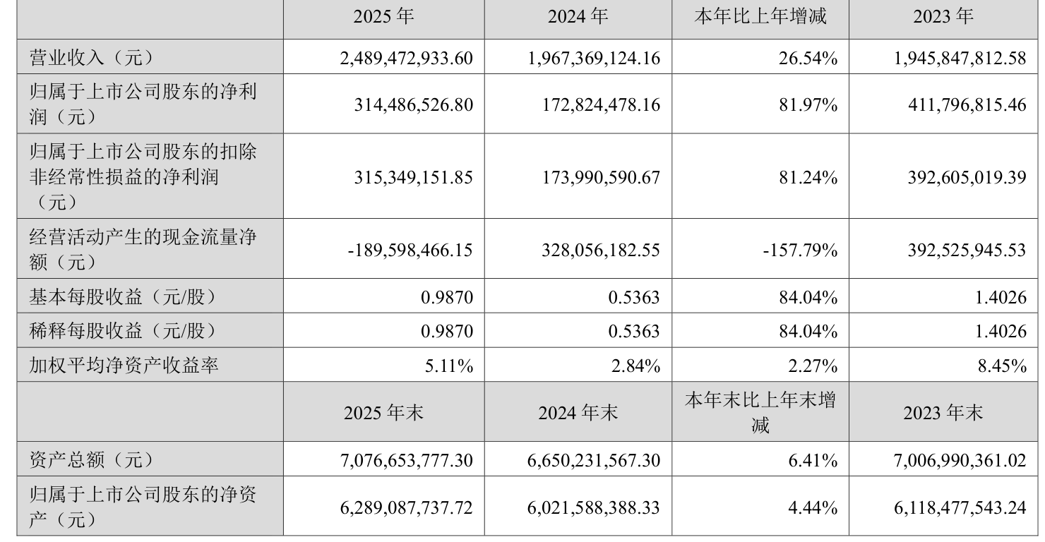 中证智能财讯金雷股份(300443)3月20日披露2025年年度报告。2025年,公司实现营业总收入24.89亿元,同比增长26.54%;归母净利润3.14亿元,同比增长81.97%;扣非净利润3.15亿元,同比增长81.24%;经营活动产生的现金流量净额为-1.9亿元,上年同期为3.28亿元;报告期内,金雷股份基本每股收益为0.987元,加权平均净资产收益率为5.11%。公司2025年度分配预案为:拟向全体股东每10股派现1元(含税)。