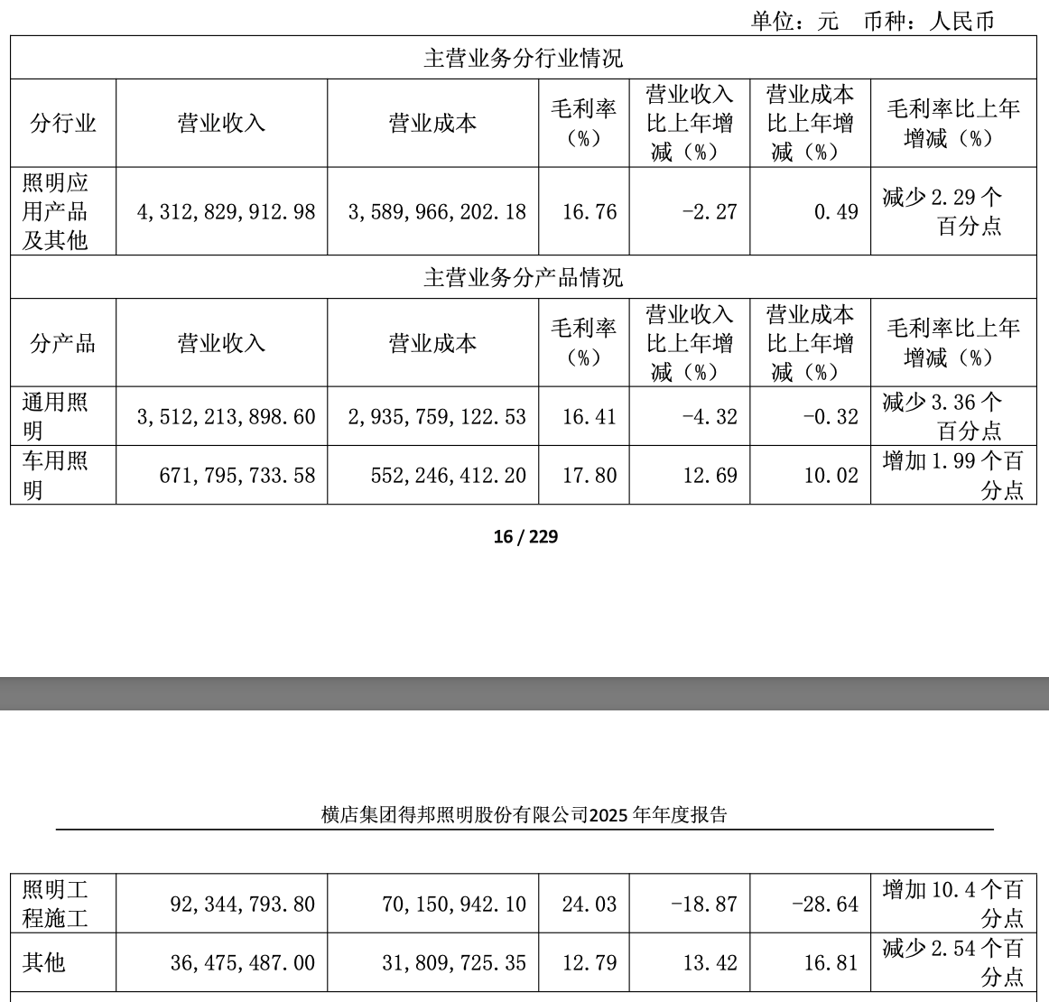 报告期内,公司通用照明业务实现营业收入36.05亿元,同比下降4.76%,车载业务实现营业收入6.72亿元,同比上升12.69%。