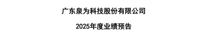 泉为科技业绩预告情况