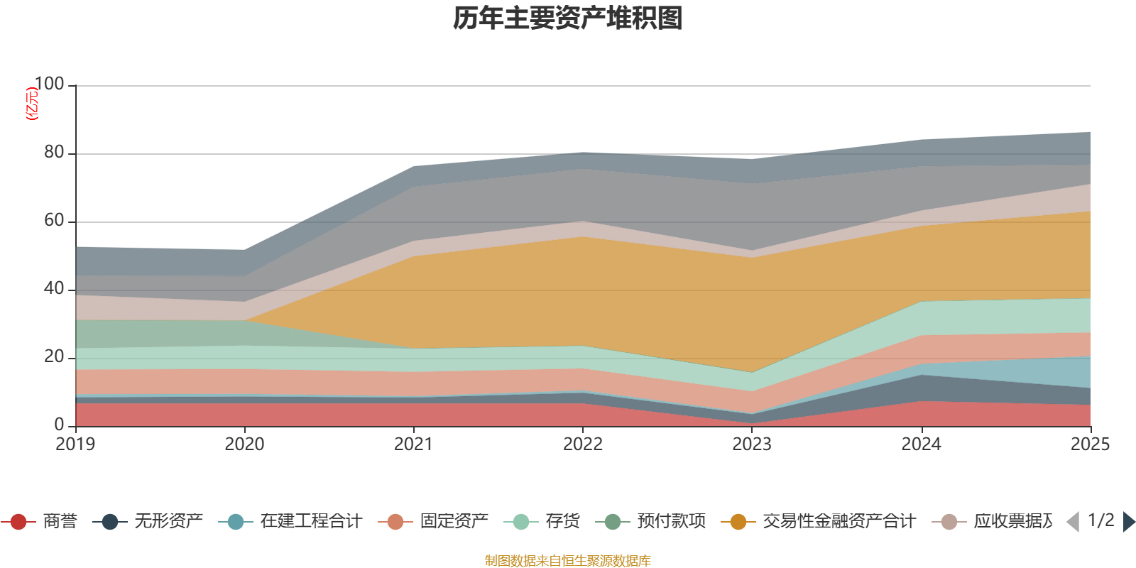 资产重大变化方面,截至2025年末,公司货币资金较上年末减少55.86%,占公司总资产比重下降8.82个百分点;在建工程合计较上年末增加192.39%,占公司总资产比重上升7.06个百分点;应收票据及应收账款较上年末增加75.53%,占公司总资产比重上升3.83个百分点;无形资产较上年末减少35.91%,占公司总资产比重下降3.46个百分点。