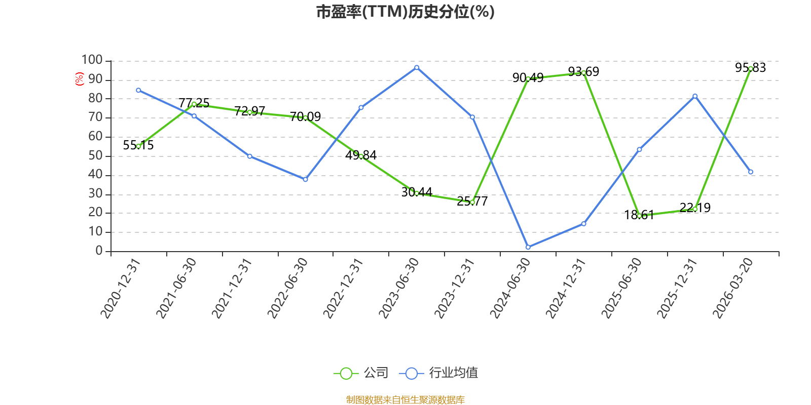 市盈率、市净率为负时,不显示当期分位数,会导致折线图中断。