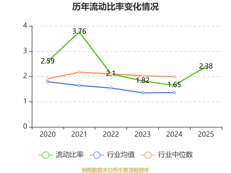 2025年,公司流动比率为2.38,速动比率为1.32。
