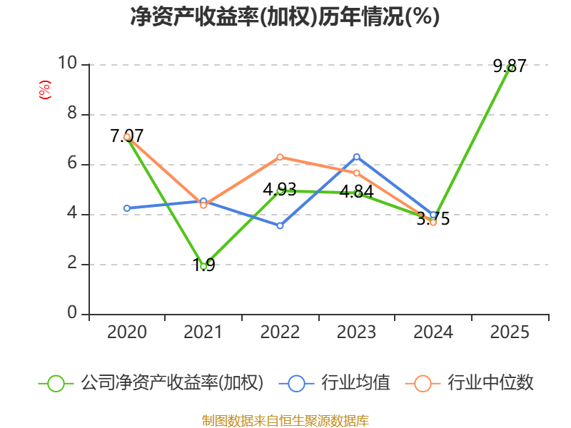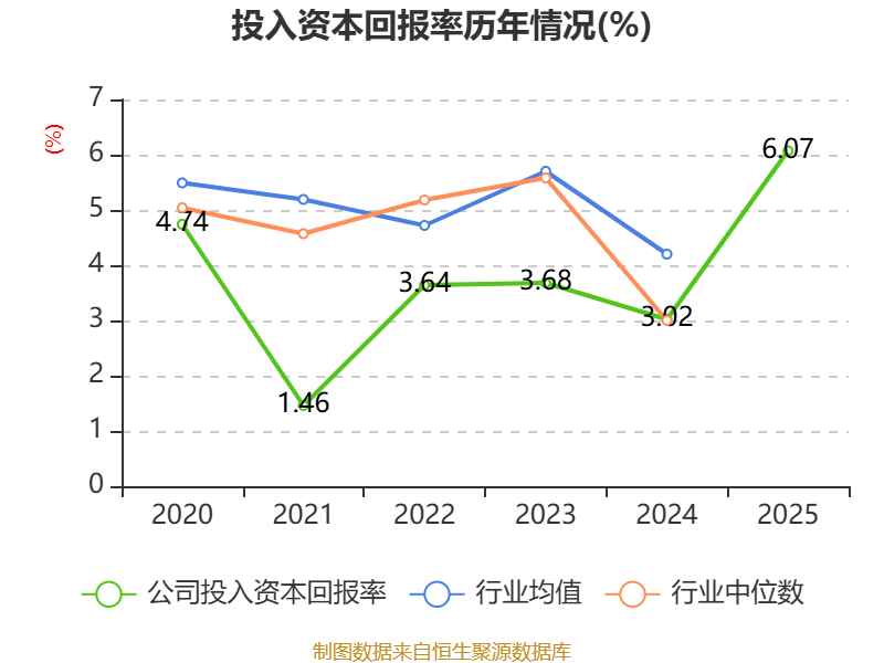数据显示,2025年公司加权平均净资产收益率为9.87%,较上年同期上升6.12个百分点。公司2025年投入资本回报率为6.07%,较上年同期上升3.05个百分点。