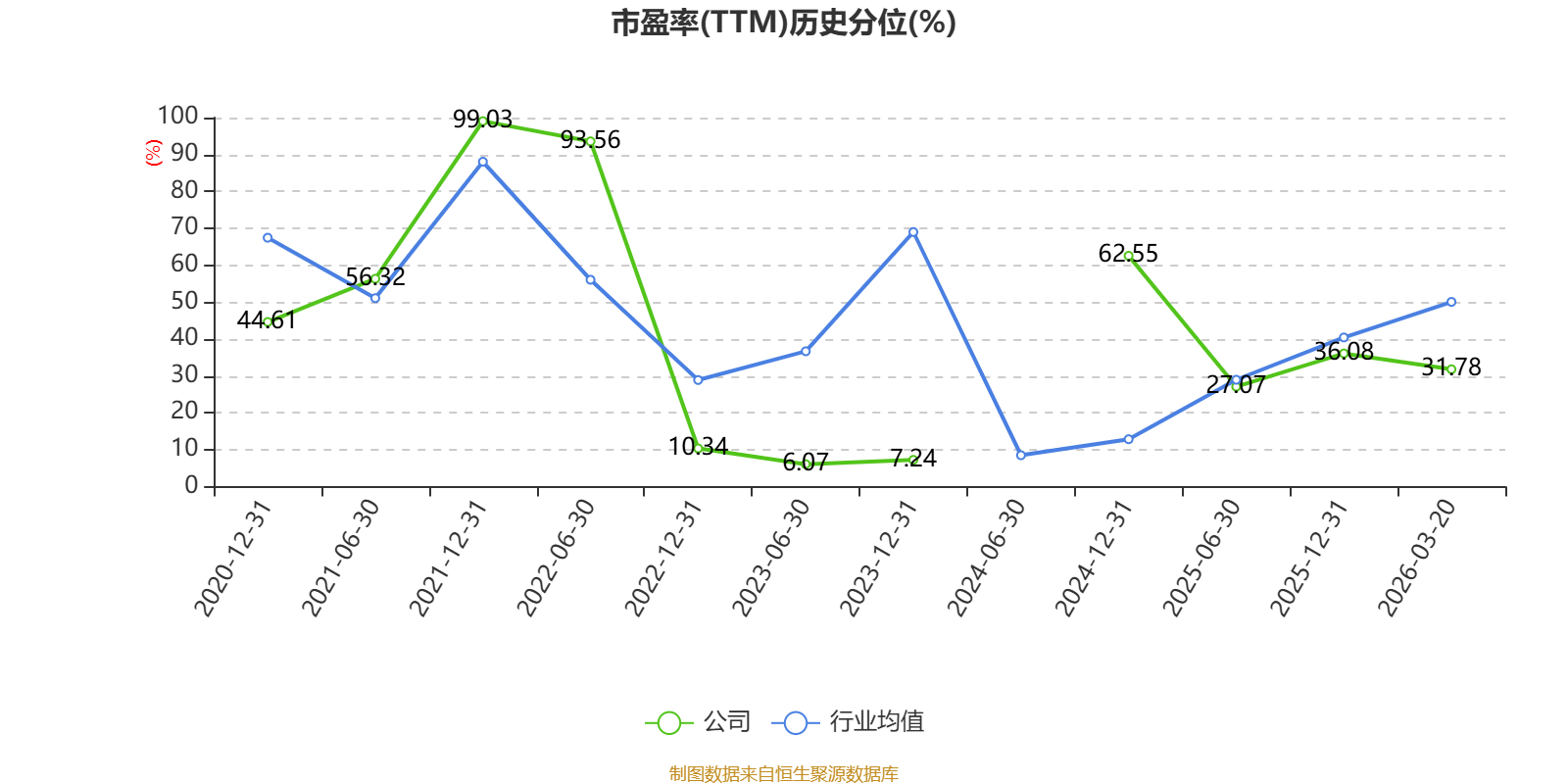 市盈率、市净率为负时,不显示当期分位数,会导致折线图中断。