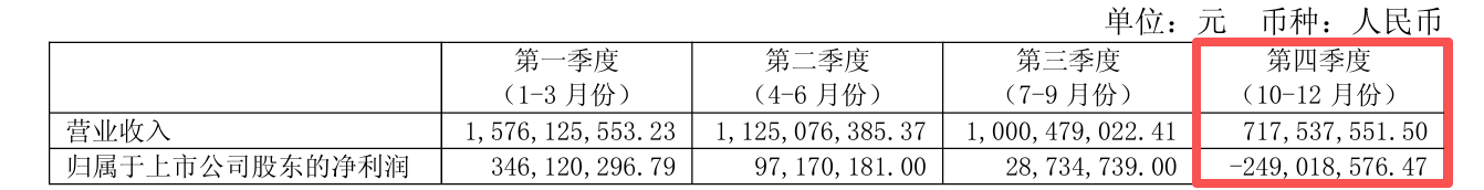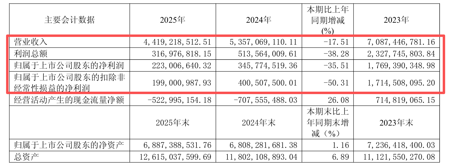 公司2025年各季度净利润呈现持续下滑态势,第四季度更是转为大幅亏损。具体来看,第一季度至第四季度,公司的归母净利润分别为3.46亿元、9717.02万元、2873.47万元和-2.49亿元。