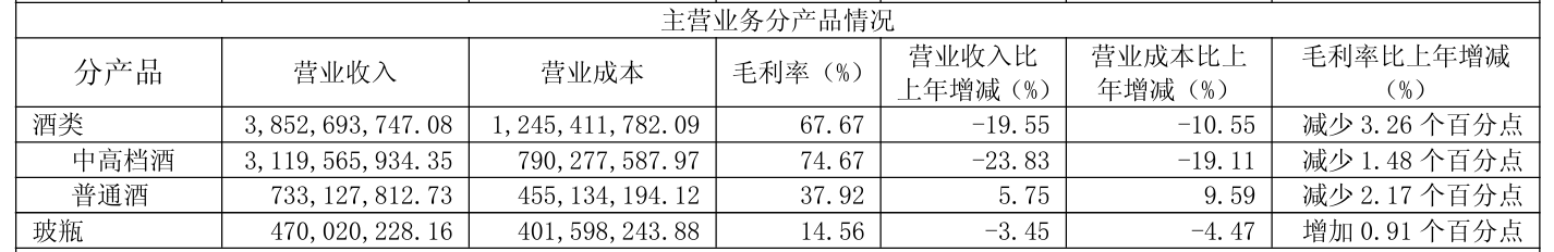 各档酒类毛利率均走低