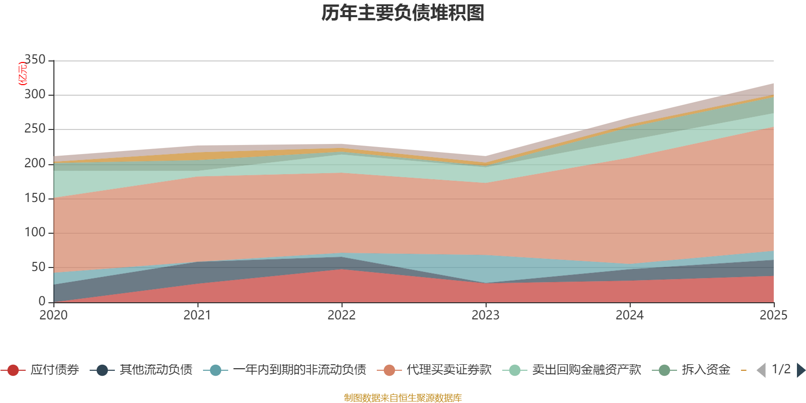 负债重大变化方面,截至2025年末,公司卖出回购金融资产款较上年末减少22.19%,占公司总资产比重下降2.08个百分点;其他流动负债较上年末增加41.52%,占公司总资产比重上升1.03个百分点;一年内到期的非流动负债较上年末增加71.29%,占公司总资产比重上升1个百分点;交易性金融负债合计较上年末增加4612.72%,占公司总资产比重上升0.98个百分点。