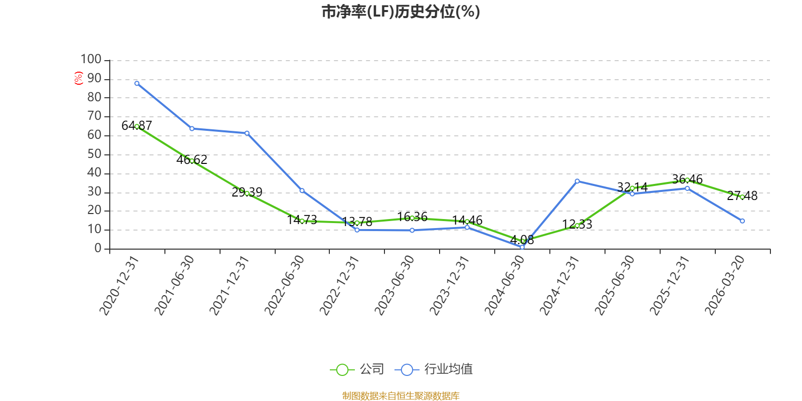 市盈率、市净率为负时,不显示当期分位数,会导致折线图中断。