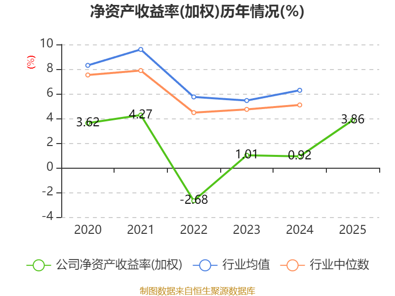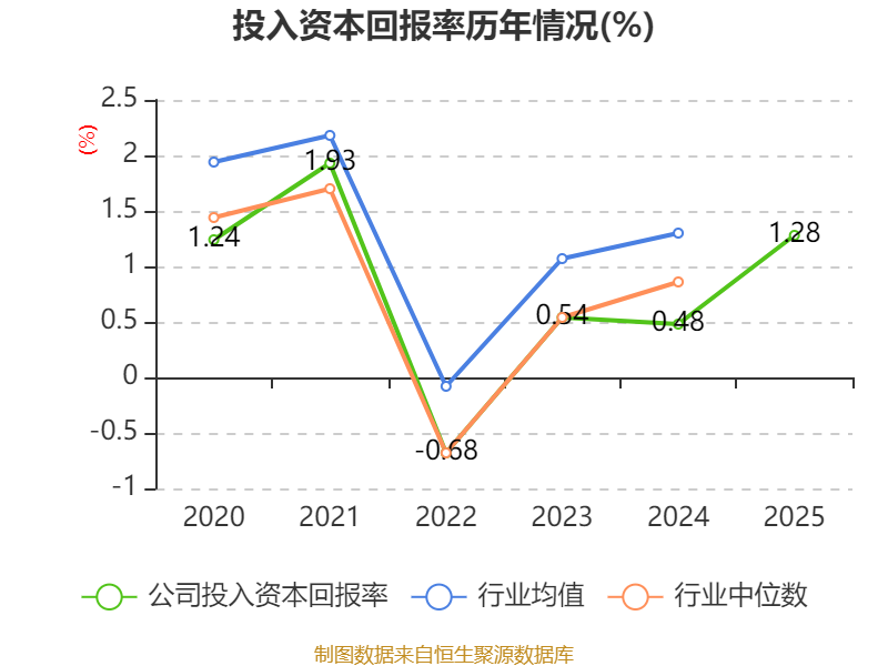 数据显示,2025年公司加权平均净资产收益率为3.86%,较上年同期上升2.94个百分点。公司2025年投入资本回报率为1.28%,较上年同期上升0.8个百分点。