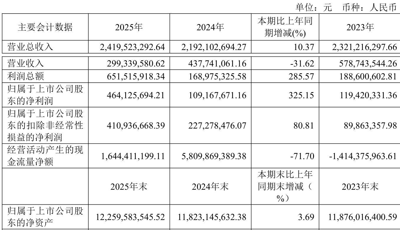 中证智能财讯湘财股份(600095)3月21日披露2025年年度报告。2025年,公司实现营业总收入24.2亿元,同比增长10.37%;归母净利润4.64亿元,同比增长325.15%;扣非净利润4.11亿元,同比增长80.81%;经营活动产生的现金流量净额为16.44亿元,同比下降71.70%;报告期内,湘财股份基本每股收益为0.1629元,加权平均净资产收益率为3.86%。