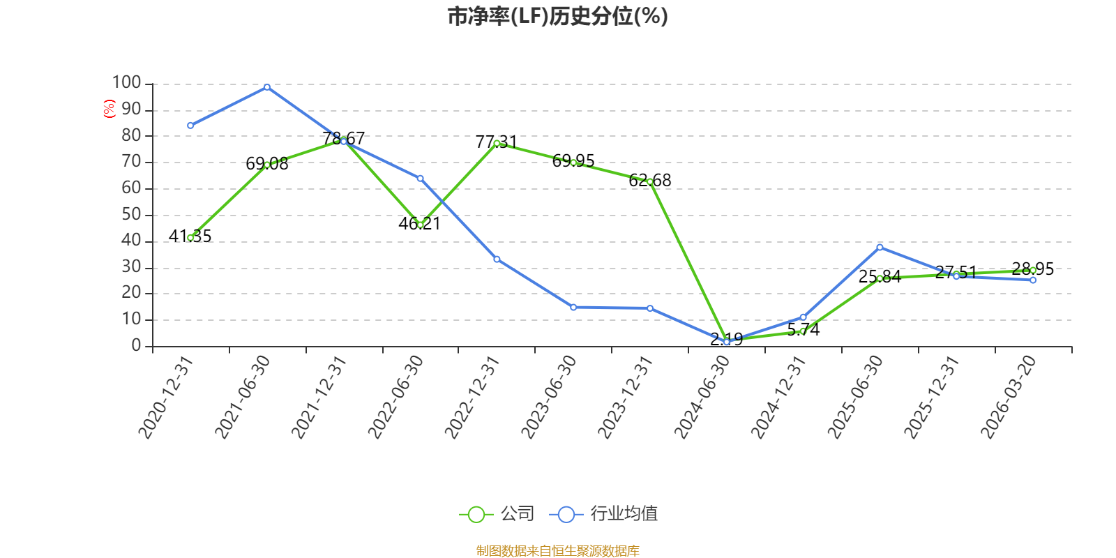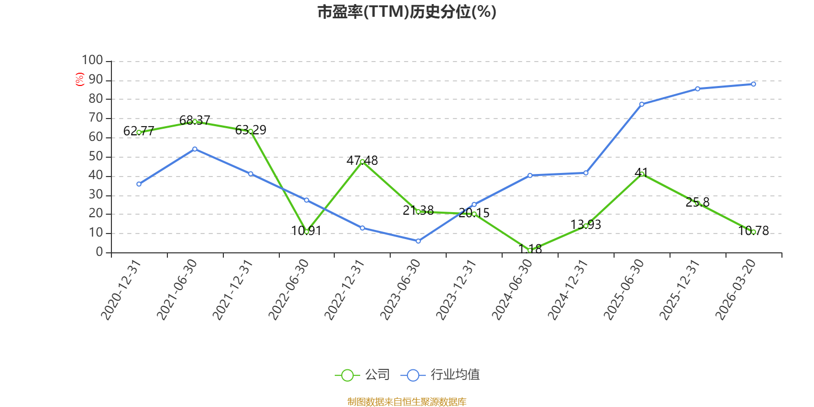 市盈率、市净率为负时,不显示当期分位数,会导致折线图中断。