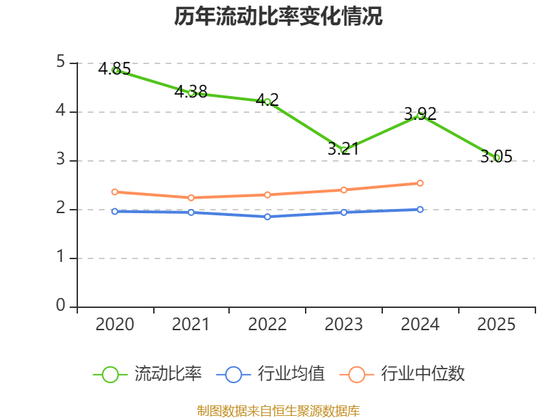 2025年,公司流动比率为3.05,速动比率为2.47。