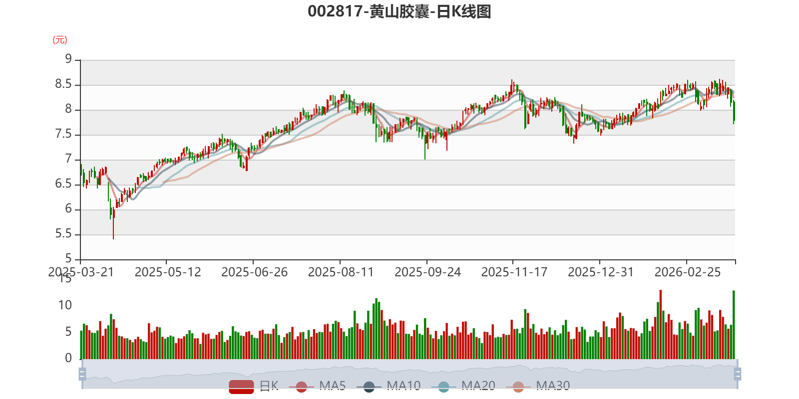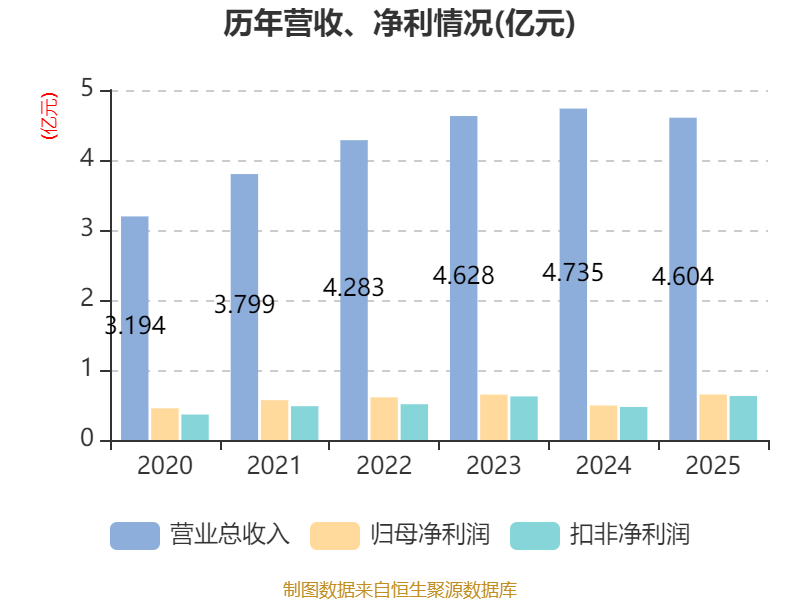 中证智能财讯黄山胶囊(002817)3月21日披露2025年年度报告。2025年,公司实现营业总收入4.6亿元,同比下降2.76%;归母净利润6498.59万元,同比增长31.94%;扣非净利润6290.54万元,同比增长33.40%;经营活动产生的现金流量净额为8489.4万元,同比增长33.67%;报告期内,黄山胶囊基本每股收益为0.22元,加权平均净资产收益率为6.90%。公司2025年度分配预案为:拟向全体股东每10股派现0.53元(含税)。