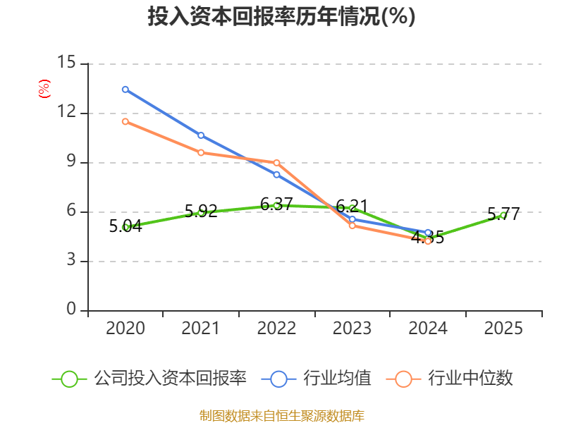 数据显示,2025年公司加权平均净资产收益率为6.9%,较上年同期上升1.49个百分点。公司2025年投入资本回报率为5.77%,较上年同期上升1.42个百分点。