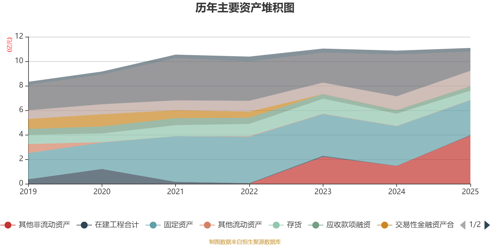 资产重大变化方面,截至2025年末,公司其他非流动资产较上年末增加171.46%,占公司总资产比重上升22.15个百分点;货币资金较上年末减少54.49%,占公司总资产比重下降17.41个百分点;固定资产较上年末减少12.08%,占公司总资产比重下降4.1个百分点;存货较上年末减少24.39%,占公司总资产比重下降2.38个百分点。