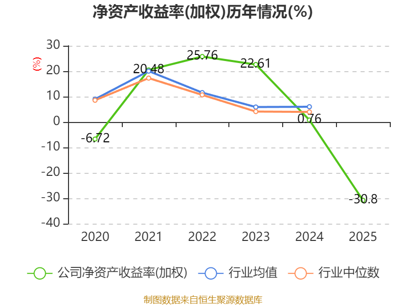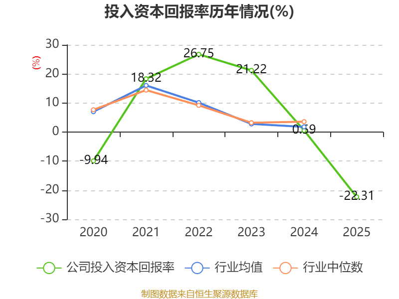 数据显示,2025年公司加权平均净资产收益率为-30.8%,较上年同期下降31.56个百分点。公司2025年投入资本回报率为-22.31%,较上年同期下降22.9个百分点。