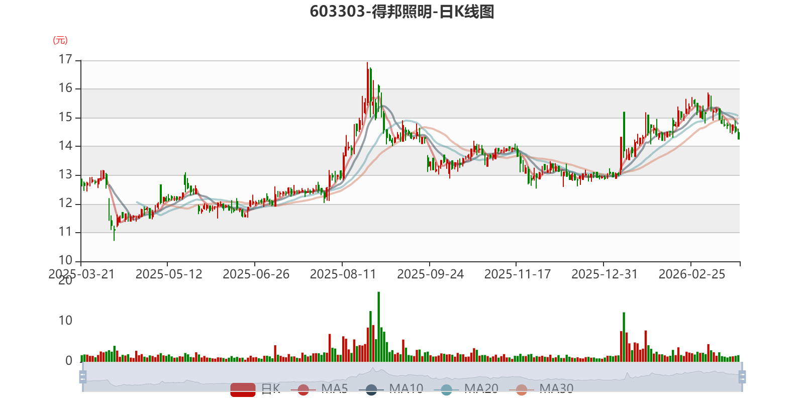 以3月20日收盘价计算,得邦照明目前市盈率(TTM)约为25.73倍,市净率(LF)约2.14倍,市销率(TTM)约1.57倍。